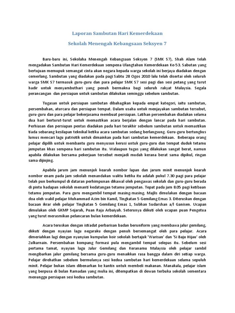 Contoh karangan laporan sambutan kemerdekaan peringkat sekolah karangan sambutan hari kemerdekaan. Sekolah sk ampang pecah telah mengadakan pelancaran sambutan bulan.